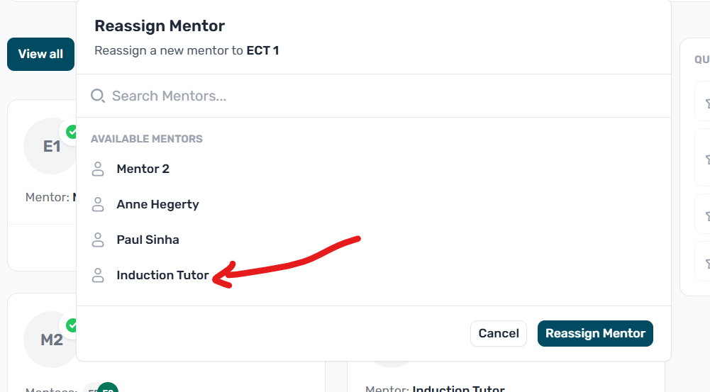 Induction Leads can act as Mentors in the usual way within Prism. All you need to do is to select yourself on the "Assign mentor" or "Reassign mentor" dropdown on your "Participant management page". See the screenshots below:
